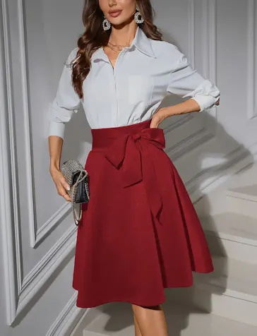 Elegant High-Waist Midi Skirt with Bow