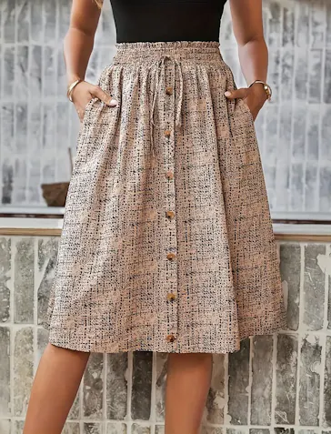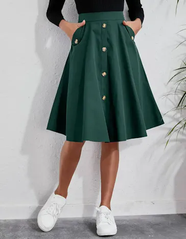 Elevate your style with this high-waist flared skirt, featuring elegant buttons, a comfortable fit, and perfect for any occasion.